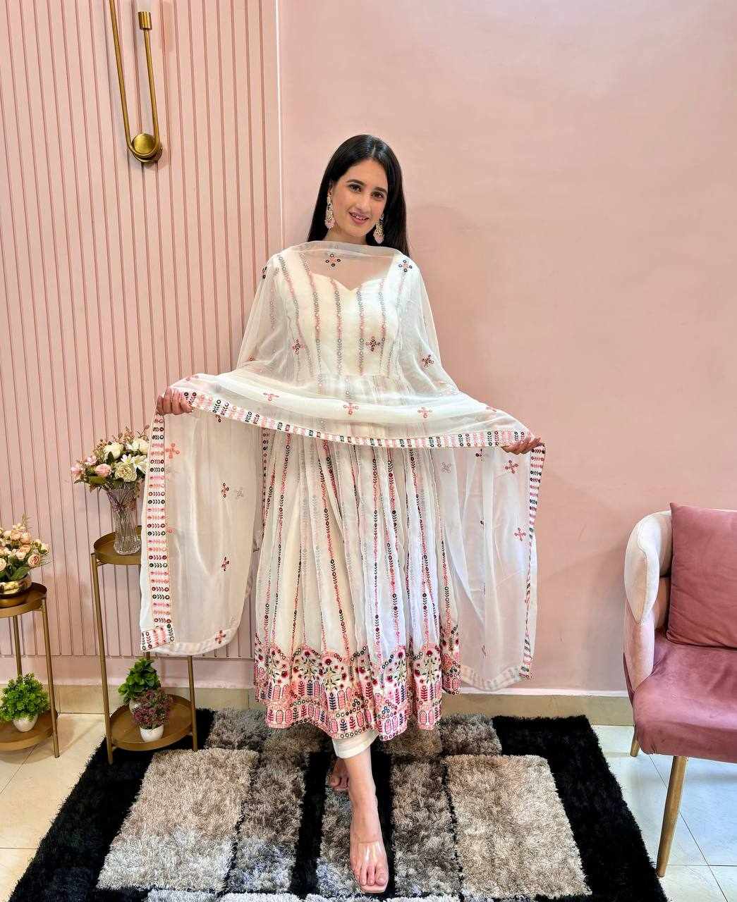 Gown Fabric: Fox Georgette with Embroidery Work with Full Sleeves